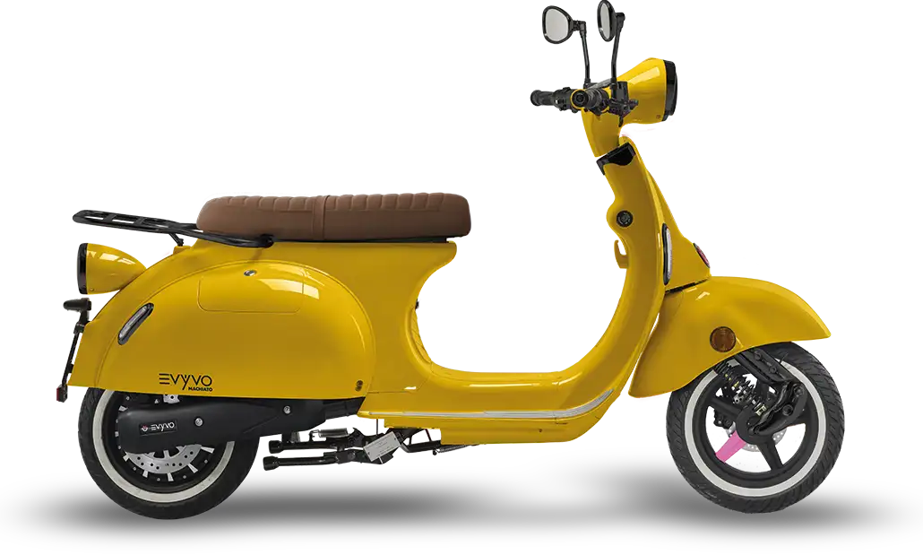 Du willst in der grauen Masse mitschwimmen? Nicht mit uns! Denn der Evyvo 45er Elektroller fällt mehr auf, als ein Flamingo in der Pinguinkolonie. Restrostylisch, kraftvoll und in sieben einzigartigen Farben lassen wir dich garantiert nicht im Großstadtstau hängen oder auf der Landstraße versauern. Evyvo – Null Emissionen, 100% Style!