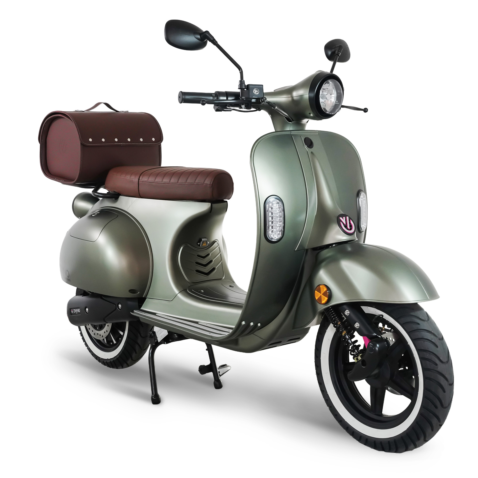 Unser E-Roller besticht nicht nur durch einfache Bedienung und klassiche Retro-Formen, sondern ist gefüllt mit einer Vielzahl von Features die das Elektro-Roller-Herz höher schlagen lassen. Modularer leistungsstarker Akku und ein voll-digitaler Tacho sind natürlich Standard.